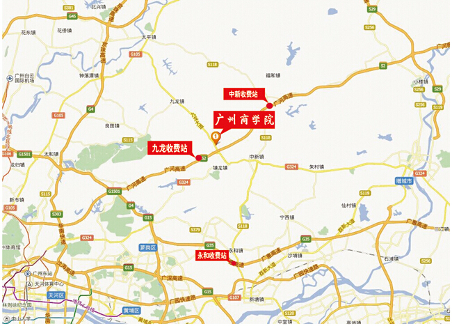 ③佛山、肇庆地区:在当地上广佛高速(或广三高速、广肇高速),经西二环高速→北二环高速,再转广河高速(河源方向),在九龙出口,转入九龙大道(往中新知识城方向),即到达新利18平台(华南师范大学增城学院)。